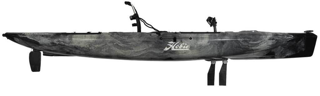 With the first major redesign of the best-selling Mirage Outback in over a decade, Hobie has single-handedly advanced the sport of kayak fishing. This fully-loaded fishing machine is built for every conceivable fishing expedition, whether you’re prowling the ocean for monster gamefish or stalking bass in your favorite freshwater fishing hole. The extra-wide standing deck offers an improved casting platform and convenient vantage point for sight fishing, allowing for superior vision from above while the revolutionary Guardian Transducer Shield gives you multidimensional vision below. The new Vantage CTW seat provides extra width for unmatched room and comfort. Four molded-in rod holders, multiple deluxe H-Track mounts, and numerous high-capacity storage compartments ensure that all of your gear is at your fingertips. Powered by the MirageDrive 180 with ARC Cranks + Turbo Fins – now standard on all Outbacks – this fine-tuned angling vessel is highly versatile, fast, quiet, and exceedingly nimble. Now featuring our Kick-Up Rudder system with dual steering capabilities, combating drift and navigating tight water has never been easier.